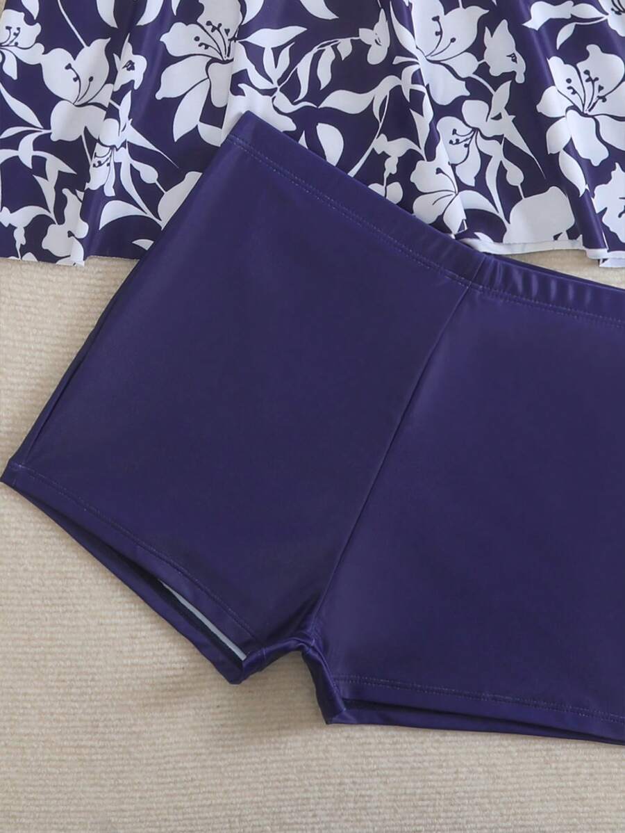 This elegantly designed tankini set invites you to experience the serene beauty of beach days like never before. Luxuriously draped in playful floral patterns, it embodies a sophisticated charm that enhances confidence and provides supreme comfort by the shore.